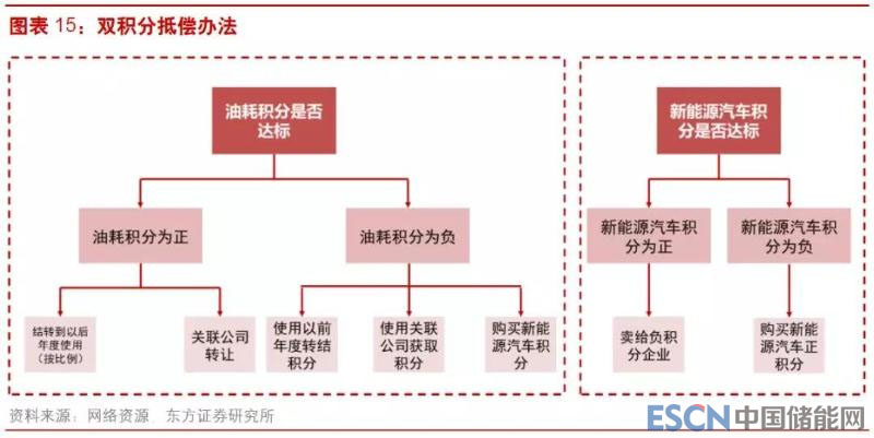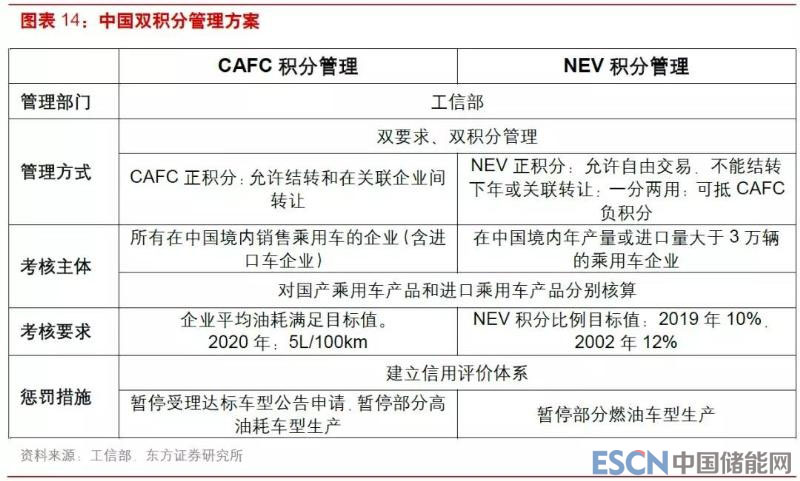 與此同時(shí),盡管電池成本持續(xù)快速降低,但預(yù)計(jì)在 2025 年之前,電動(dòng)車(chē)的成本競(jìng)爭(zhēng)力仍居于劣勢(shì)。換擋階段,工信部推出雙積分政策,迫使傳統(tǒng)車(chē)企加大新能源汽車(chē)產(chǎn)量,提升新能源汽車(chē)的滲透率。2017 年 9 月 28 日,工信部、財(cái)政部、商務(wù)部、海關(guān)總署、質(zhì)檢總局等五部門(mén)聯(lián)合發(fā)布《乘用車(chē)企業(yè)平均燃料消耗量與新能源汽車(chē)積分并行管理辦法》,規(guī)定該辦法自 2018 年 4 月 1 日起施行,同時(shí)規(guī)定對(duì)暢通能源乘用車(chē)年度生產(chǎn)量或者進(jìn)口量達(dá)到 3 萬(wàn)輛以上的企業(yè),自 2019 年開(kāi)始設(shè)定新能源汽車(chē)積分比例要求,這標(biāo)志著備受關(guān)注的雙積分政策正式落地。