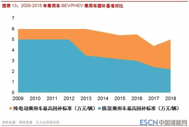 隨著電池價(jià)格持續(xù)下降,我國(guó)政府對(duì)于新能源汽車(chē)的補(bǔ)貼力度也在逐漸下調(diào),自2009年施行補(bǔ)貼政策以來(lái),純電動(dòng)車(chē)補(bǔ)貼上限從6萬(wàn)元/輛下調(diào)至5萬(wàn)元/輛,對(duì)于里程的要求則從沒(méi)有硬性規(guī)定到400公里以上,如以度電補(bǔ)貼計(jì),早期純電動(dòng)車(chē)每kWh的補(bǔ)貼強(qiáng)度最高可達(dá)3000元,2018年的最新標(biāo)準(zhǔn)降至1200元/kWh以下,插電混合乘用車(chē)的補(bǔ)貼強(qiáng)度則從5萬(wàn)元/輛降至2.2萬(wàn)元/輛,2019年的補(bǔ)貼將在2016年基礎(chǔ)上再降40%,而按照規(guī)劃,2020年之后電動(dòng)車(chē)的直接補(bǔ)貼將全部取消,屆時(shí)中國(guó)的新能源汽車(chē)產(chǎn)業(yè)也將走完依靠補(bǔ)貼政策驅(qū)動(dòng)的階段。