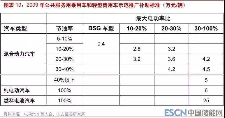 具體政策層面,2009 年國(guó)務(wù)院發(fā)布《汽車(chē)產(chǎn)業(yè)調(diào)整和振興規(guī)劃》,其中首次提出了“啟動(dòng)國(guó)家節(jié)能和新能源汽車(chē)示范工程,由中央財(cái)政安排資金給予補(bǔ)貼”的政策指導(dǎo)意見(jiàn)。同年,財(cái)政部發(fā)布《關(guān)于開(kāi)展節(jié)能和新能源汽車(chē)示范推廣試點(diǎn)工作的通知》,明確對(duì)試點(diǎn)城市公共服務(wù)領(lǐng)域購(gòu)臵新能源汽車(chē)給予補(bǔ)助,公共領(lǐng)域新能源汽車(chē)補(bǔ)貼時(shí)代正式來(lái)臨。彼時(shí),一輛純電動(dòng)最高可拿到 6 萬(wàn)元/輛的國(guó)補(bǔ)資金,插混(默認(rèn)為 40%節(jié)油率以上)一般也能拿到 5 萬(wàn)元/輛的國(guó)補(bǔ)資金,純電動(dòng)大巴的補(bǔ)貼更是高達(dá) 50 萬(wàn)元/輛。