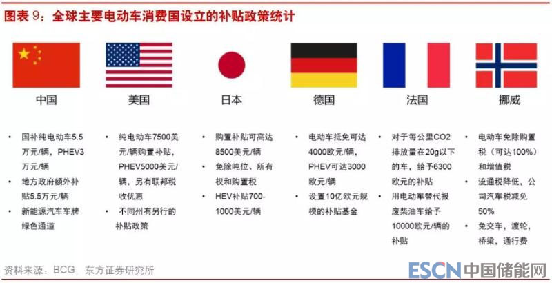 盡管動(dòng)力電池成本已從2009年1000$/kWh快速下降到目前150 ~ 170 $ / kWh,新能源汽車(chē)尤其是純電動(dòng)車(chē)的購(gòu)臵成本和使用全成本仍然遠(yuǎn)高于傳統(tǒng)燃油車(chē),根據(jù)BNEF的研究,2018年美國(guó)燃油小型車(chē)的成本約為18000美元,其中動(dòng)力總成系統(tǒng)成本約5500美元,而電動(dòng)車(chē)的電池系統(tǒng)與動(dòng)力系統(tǒng)成本接近12000美元,因此截至目前最有效的政策仍以直接補(bǔ)貼為主—如中國(guó)對(duì)于各種車(chē)型的購(gòu)臵補(bǔ)貼、美國(guó)對(duì)于銷(xiāo)量在20萬(wàn)輛以下的車(chē)企給予每輛7500美元的稅收抵免—以縮小電動(dòng)車(chē)和燃油車(chē)的成本差距。