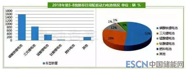 磷酸鐵鋰電池在推薦目錄配套中占據(jù)半壁江山,主要是因為目前新能源客車主要搭載磷酸鐵鋰電池,而新能源客車在第5-8批推薦目錄中占比54%。