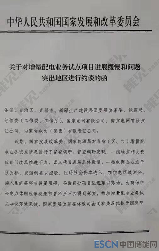 為確保中央電力體制改革決策部署不折不扣得到落實,推動增董配電業(yè)務(wù)試點加快落地見效,9月28日,國家發(fā)改委印發(fā)《關(guān)于對增量配電業(yè)務(wù)試點項目進展緩慢和問題突出地區(qū)進行約談的函》,文件指出: