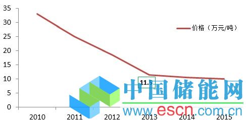 盡管天賜材料實現(xiàn)了六氟磷酸鋰的自給自足,但隨著國內(nèi)企業(yè)在六氟磷酸鋰技術(shù)上的不斷突破,國產(chǎn)化率逐漸的提高,其價格也在逐漸的下滑,預(yù)計2013年價格11.5萬元/噸左右,較2011年下降了65.2%。