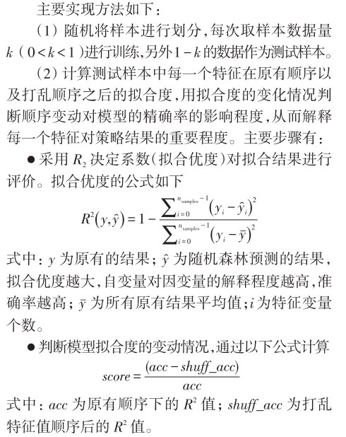樣本客戶屬性特征篩選的主要目的是選擇對訓(xùn)練數(shù)據(jù)具有分類能力的屬性特征,以提高機(jī)器學(xué)習(xí)的效率。如果利用一個屬性特征進(jìn)行分類的結(jié)果與隨機(jī)分類的結(jié)果沒有較大差別,則稱這個特征不具備分類能力,理論上刪除此特征對決策樹學(xué)習(xí)的精度影響不大,同時可使模型泛化能力更強(qiáng)。隨機(jī)森林提供了2種特征選擇的方法:平均精確率(MDA)減少和平均不純度減少(MDI)。本研究中采用隨機(jī)森林平均精確率減少方法進(jìn)行特征選擇。平均精確率減少特征選擇方法是指直接度量每個特征對模型精確率的影響,主要思路是打亂每個特征的特征值順序,度量順序變動對模型的精確率的影響,對于不重要的變量來說,打亂順序?qū)δP偷木_率影響不會太大,但是對于重要的變量來說,打亂順序就會降低模型的精確率。
