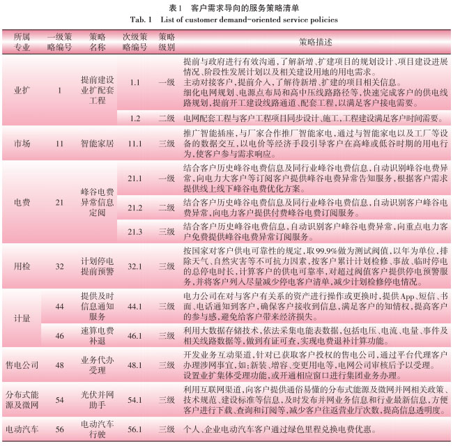 客戶需求導(dǎo)向的服務(wù)策略清單如表1所示