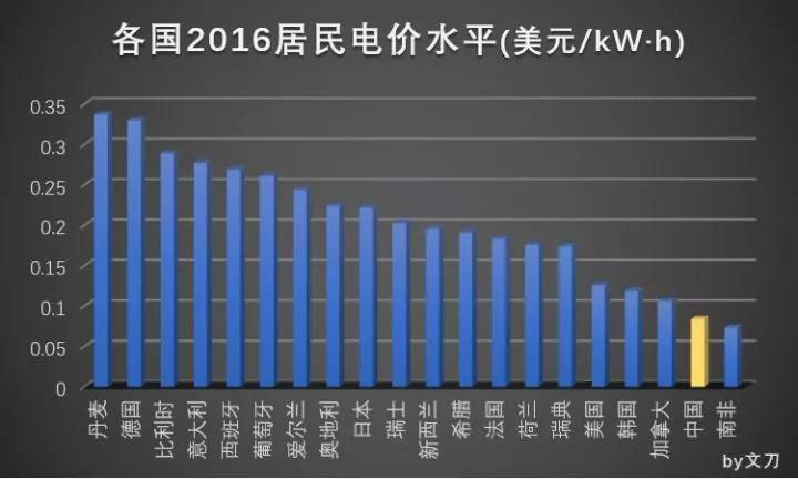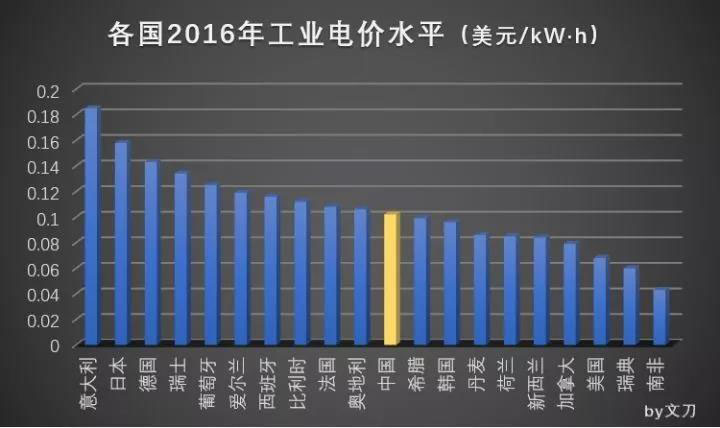 整體來看,我國(guó)的電價(jià)水平,整體屬于中等略偏下。以2016年的數(shù)據(jù),采用美元為基準(zhǔn)進(jìn)行轉(zhuǎn)換后進(jìn)行比較。同時(shí),由于各地的電價(jià)數(shù)據(jù)形式不同,如豐枯季、分時(shí)電價(jià)等,所以只取了平均的電價(jià)水平。