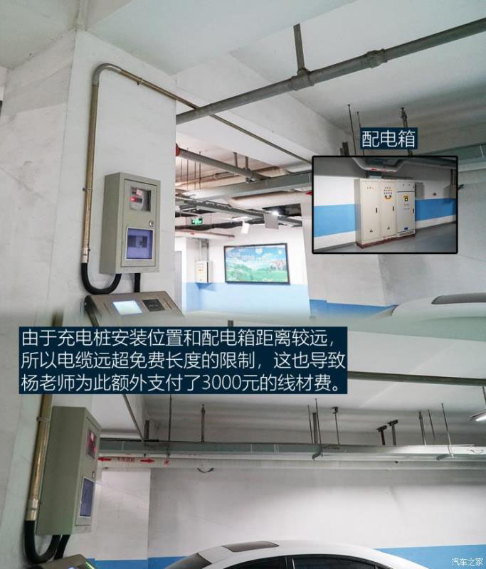 在用戶向經(jīng)銷商提出安裝家充樁的申請后,充電樁的供應(yīng)商會與用戶預(yù)約實(shí)地勘探時(shí)間,這主要是勘探地形的過程,比如從哪個(gè)配電箱接電、大概需要多少線材等等。充電樁是經(jīng)銷商免費(fèi)為用戶提供的,其中包括基礎(chǔ)安裝費(fèi)以及線材費(fèi)用,但由于車位位置原因,用戶可能需要支付一些額外的線材費(fèi)用,比如楊鵬老師的車位與配電箱距離較遠(yuǎn)(30米內(nèi)免費(fèi),不同供應(yīng)商規(guī)定不同),所以花費(fèi)了3000余元向充電樁供應(yīng)商購買線材。