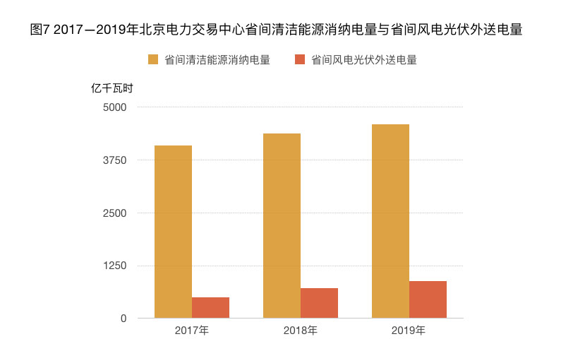 如圖7所示,北京電力交易中心的數(shù)據(jù)顯示,2019年風(fēng)電光伏外送電量達(dá)到880億千瓦時,同比增長22.6%,占省間清潔能源消納電量的19%。這在一定程度上緩解了棄風(fēng)棄光率,2019年全國棄風(fēng)棄光率分別為4%和2%,同比下降了3%和1%。
