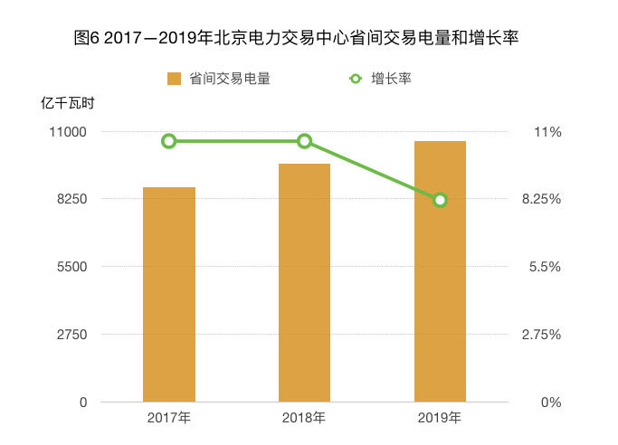在跨區(qū)跨省電力市場中,省間電力直接交易電量增長迅速,如圖7所示,2019年達(dá)到10619億千瓦時。