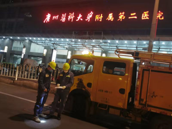 南方電網(wǎng)廣東廣州海珠供電局運維班組人員到定點收治醫(yī)院廣醫(yī)二院開展保供電特巡特維,檢查電纜管廊情況,確保電纜運行環(huán)境良好。