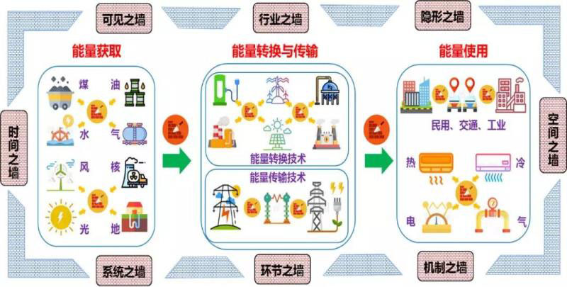 行業(yè)之墻:不同傳統(tǒng)能源冷、熱、電、氣行業(yè)之間的交流壁壘,遍及能量的獲取、轉換與傳輸、使用等環(huán)節(jié);