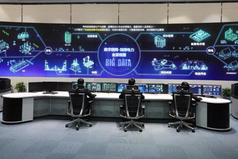▲國網(wǎng)湖南電力數(shù)據(jù)管理人員在數(shù)據(jù)共享中心監(jiān)測分析數(shù)據(jù)