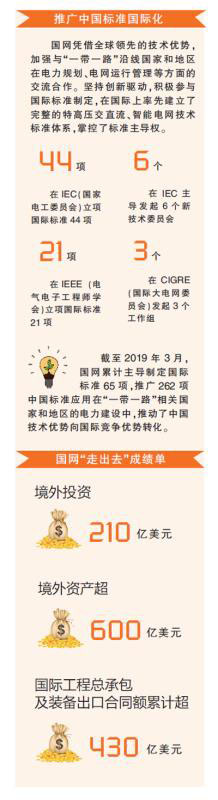據(jù)介紹,國(guó)網(wǎng)根據(jù)自身優(yōu)勢(shì)和國(guó)外市場(chǎng)需求,建立了“投資、建設(shè)、運(yùn)營(yíng)”和“技術(shù)、裝備、標(biāo)準(zhǔn)”兩個(gè)“一體化走出去”新模式。近年來(lái),該公司累計(jì)主導(dǎo)制定國(guó)際標(biāo)準(zhǔn)65項(xiàng),發(fā)布國(guó)際標(biāo)準(zhǔn)30項(xiàng),推廣262項(xiàng)中國(guó)標(biāo)準(zhǔn)在“一帶一路”沿線(xiàn)國(guó)家和地區(qū)電力建設(shè)中得到應(yīng)用,特別是在菲律賓、巴西、巴基斯坦、埃及等國(guó)家的電網(wǎng)建設(shè)和運(yùn)行中廣泛使用了中國(guó)標(biāo)準(zhǔn),推動(dòng)了中國(guó)技術(shù)優(yōu)勢(shì)向國(guó)際競(jìng)爭(zhēng)優(yōu)勢(shì)轉(zhuǎn)化。