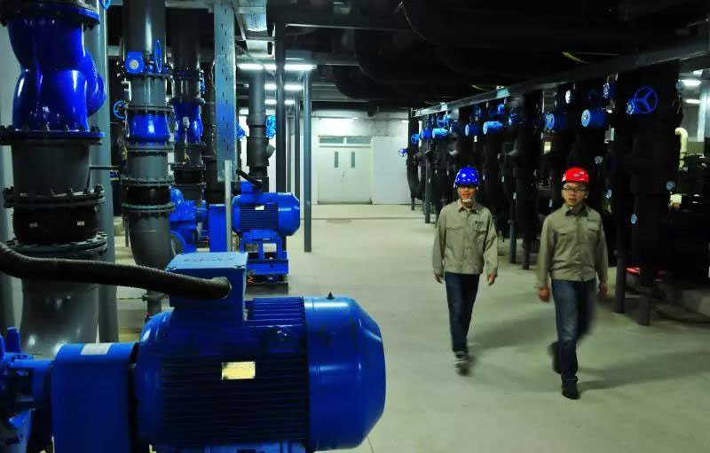 國網(wǎng)(天津)綜合能源服務有限公司員工正在檢查地源熱泵。