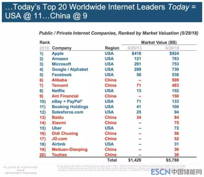 在5年前的2013年5月29日,僅有騰訊、百度兩家中國企業(yè)進入了市值最高的前20名互聯(lián)網(wǎng)公司。