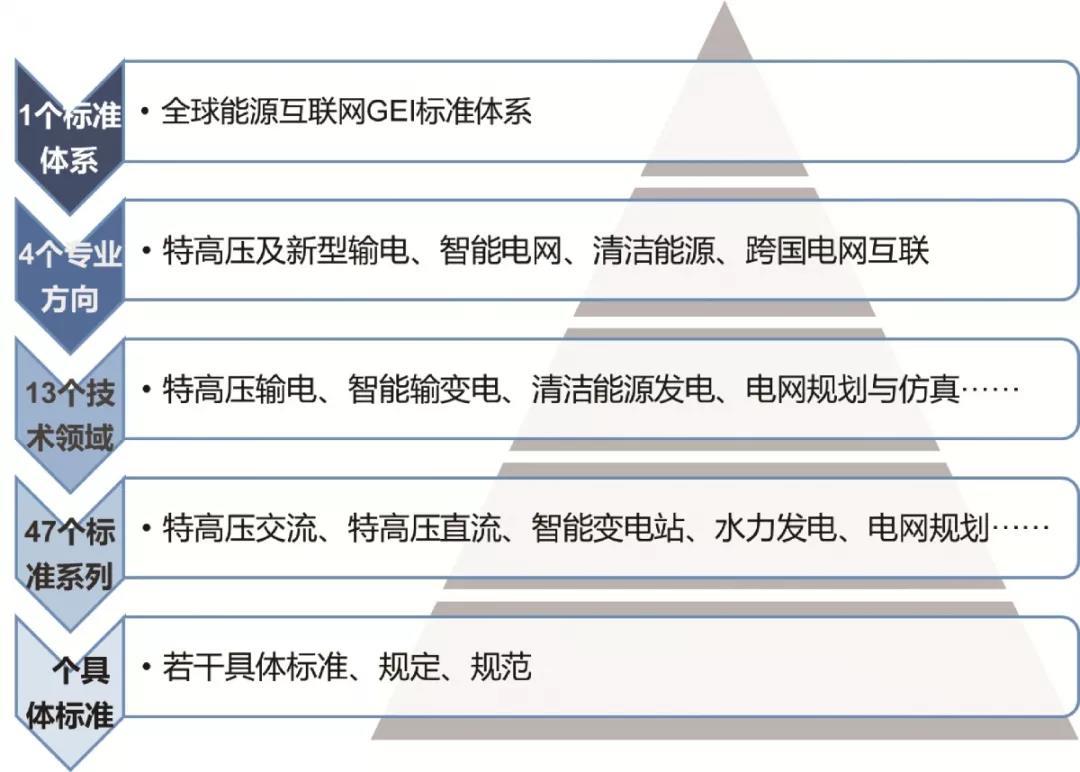GEI標準體系的總體架構需要遵循系統(tǒng)性、繼承性、互動性和開放性,由“1個體系、4個專業(yè)方向、13個技術領域、47個標準系列、若干具體標準”構成,如圖2所示。