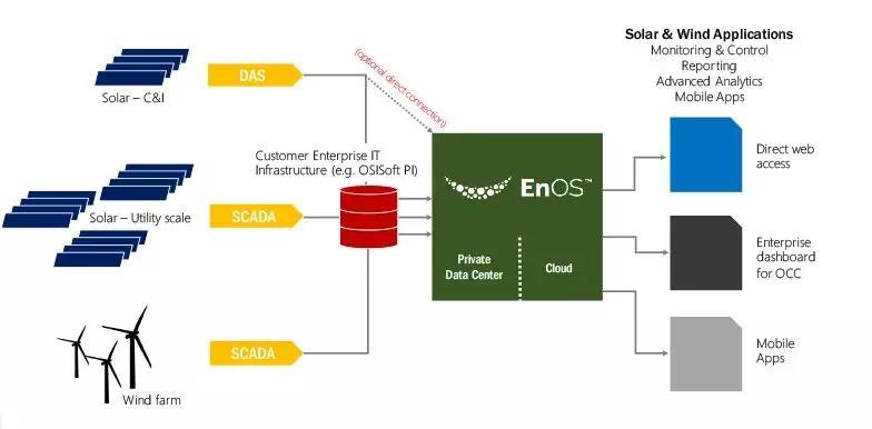 這個(gè)模式中比較著名的平臺(tái)是能源物聯(lián)網(wǎng)平臺(tái)EnOS,它為了解決新的能源系統(tǒng)分散性強(qiáng)、單點(diǎn)規(guī)模小以及間歇性明顯而建立的,我們已經(jīng)不能再用傳統(tǒng)管理大規(guī)模的工業(yè)化、自動(dòng)化的手段去管理分布式的新能源電力系統(tǒng),能源物聯(lián)網(wǎng)平臺(tái)包含風(fēng)能、太陽(yáng)能、傳統(tǒng)發(fā)電,平臺(tái)實(shí)現(xiàn)價(jià)值的主要方式是依靠跨領(lǐng)域的協(xié)同。