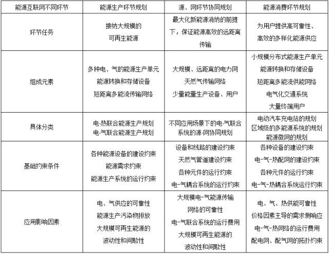 表 1 能源互聯(lián)網(wǎng)各個(gè)環(huán)節(jié)的規(guī)劃模型