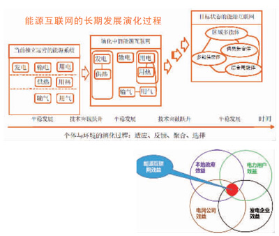 能源互聯(lián)網(wǎng)的發(fā)展是一個(gè)長(zhǎng)期演化過(guò)程,是以當(dāng)前相對(duì)獨(dú)立規(guī)劃運(yùn)營(yíng)的多種能源網(wǎng)絡(luò)為出發(fā)點(diǎn),通過(guò)多能源子系統(tǒng)的互聯(lián)互通、市場(chǎng)化商業(yè)運(yùn)營(yíng)、反饋激勵(lì)下的不同主體相互聚合形成的反饋循環(huán)。在此過(guò)程中,各主體逐步適應(yīng)調(diào)整、聚合進(jìn)化,由個(gè)體演化到局部復(fù)制、擴(kuò)散,成功的網(wǎng)絡(luò)結(jié)構(gòu)和運(yùn)營(yíng)模式不斷自我復(fù)制,通過(guò)自然選擇逐步進(jìn)化到成目標(biāo)狀態(tài)的能源互聯(lián)網(wǎng),實(shí)現(xiàn)高比例可再生能源和高能效。能源互聯(lián)網(wǎng)的發(fā)展,將隨著如儲(chǔ)能技術(shù)、轉(zhuǎn)換技術(shù)等關(guān)鍵技術(shù)的突破,經(jīng)歷若干個(gè)歷史階段,每一個(gè)技術(shù)相對(duì)穩(wěn)定的歷史階段內(nèi),能源互聯(lián)網(wǎng)的形態(tài)和運(yùn)營(yíng)是連續(xù)變化的,各階段之間則是在技術(shù)引領(lǐng)下實(shí)現(xiàn)階躍,無(wú)論是物理互聯(lián)、信息融合還是市場(chǎng)形態(tài)都發(fā)生根本性變化。